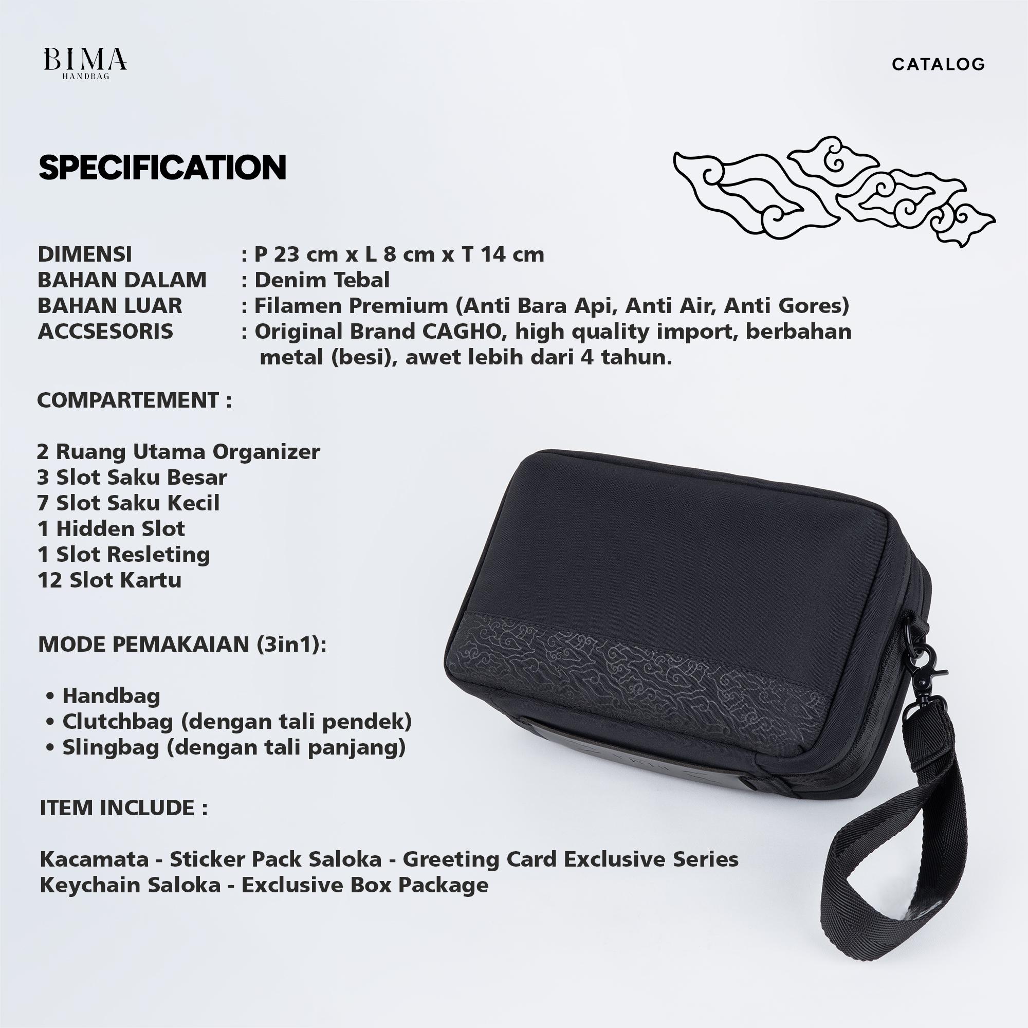 Bima Handbag adalah varian Limited Edition dari SALOKA Series yang dirancang sebagai tas 3 in 1 : bisa digunakan sebagai handbag, clutch, maupun slingbag. Tas ini cocok untuk kamu yang aktif, penuh gaya, dan ingin tetap membawa kebanggaan budaya ke setiap langkah.